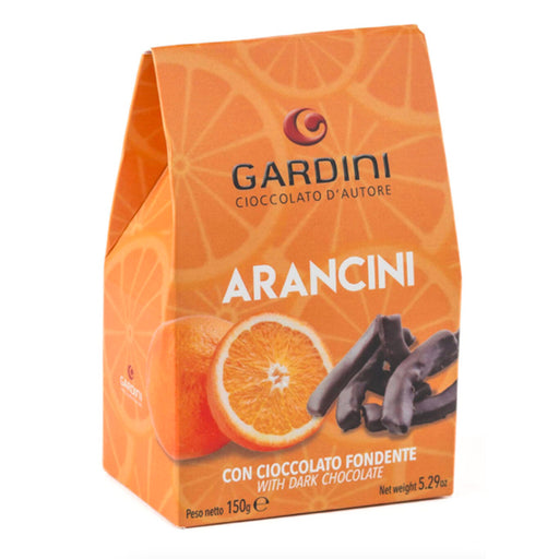 Profumati filetti di arancia candita, dolci e intensi, vengono ricoperti da un sottile strato di cioccolato extra fondente 62% cacao Gardini. Il co...