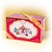 Il packaging, in latta color lampone con nastro dorato, raffigura una giostra natalizia che ruota tra abeti innevati e cieli stellati — un omaggio alla meraviglia e alla lentezza delle feste.