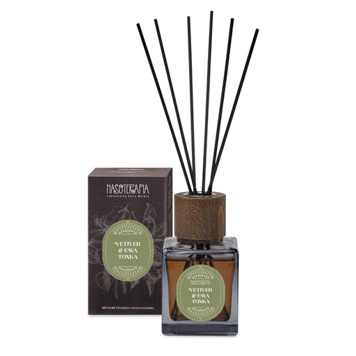 Visualizza tutti i dettagliTrasforma ogni stanza in un rifugio di eleganza con il diffusore a bastoncini Nasoterapia Vetiver & Fava Tonka. Le note legnose, calde e legger...