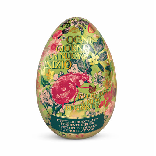 Un uovo che racchiude altri piccoli tesori. Questa latta a forma di uovo firmata Leone 1857 è un piccolo giardino primaverile: fondo verde luminoso...