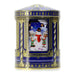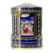 La latta “Angeli e Gnomi” è un piccolo capolavoro da collezione: decorata in blu notte e oro con rilievi eleganti, finestrelle in stile barocco e illustrazioni natalizie che raccontano scene di festa con bambini, gnomi e angioletti sotto la neve.