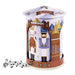 In addition to being a wonderful gift idea, Grandma Wild's musical tin boxes are a collector's item. Beautifully made, this tin music box has a double wall structure: the inner wall depicts in this case a typically Christmas scene that portrays Santa Claus delivering his gifts, while the outer wall shows a decoration of Christmas lights and snowflakes. The outer wall has 2 large cutouts, like a kind of window, to allow you to view the inner scene as it rotates and spreads the music from the music box. Inside the tin are English biscuits with chocolate chips. Dimensions: h 22cm, diameter 15cm.