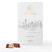 Un’elegante scatola rigida da collezione, raffinata nei dettagli e impreziosita da un design dedicato a Torino, culla del gianduiotto. Sul coperchio esterno spicca un’illustrazione stilizzata della città, mentre l’interno custodisce un ricco assortimento di gianduiotti Calcagno. Le dimensioni generose (cm 18 x 29,5 x 7) la rendono perfetta come regalo importante o per una degustazione condivisa.