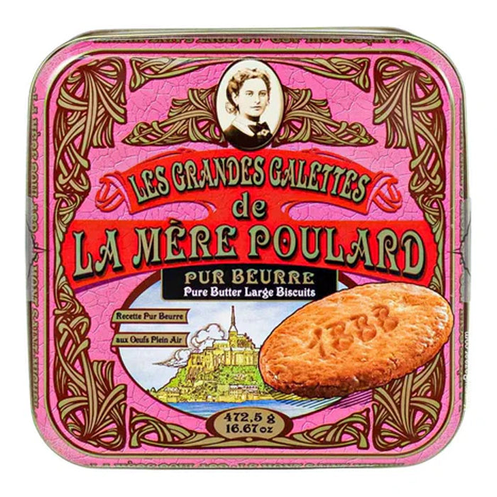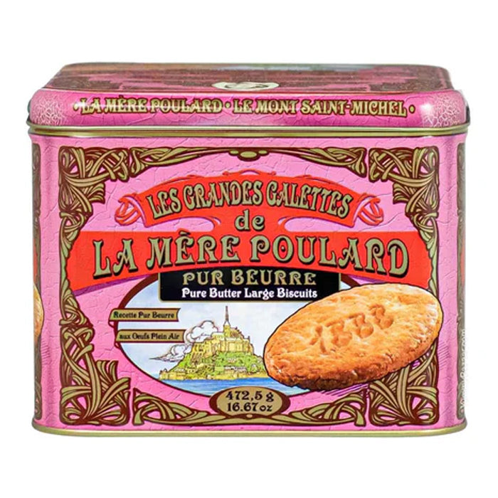 La Mère Poulard è una famosa azienda francese fondata nel 1888 dalla rinomata cuoca Annette Poulard, creatrice di innumerevoli ricette amate in tutto il mondo. Come il nome stesso suggerisce, si tratta di un biscotto al burro dalle dimensioni più grandi. Un biscotto croccante dalla forma ovale che profuma di burro fresco. All’interno della scatola di latta, troviamo 7 sacchetti da 4 biscotti.